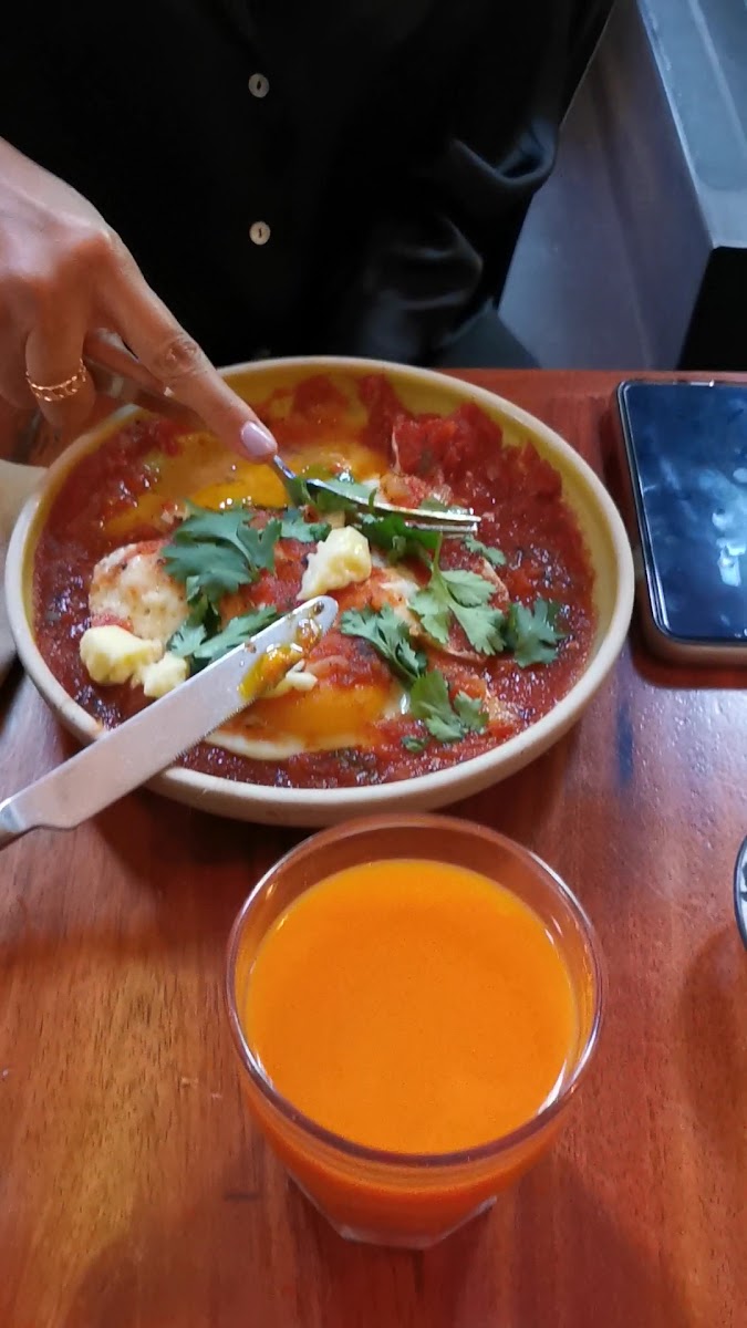Upscale and lively spot with a warm vibe. The server was super patient with my broken Spanish, which I really appreciated. The food stood out the most - the eggs came with zucchini blossoms, and the coffee was excellent. The black sourdough bread was also a highlight. Easily the best brunch I had in Mexico City.