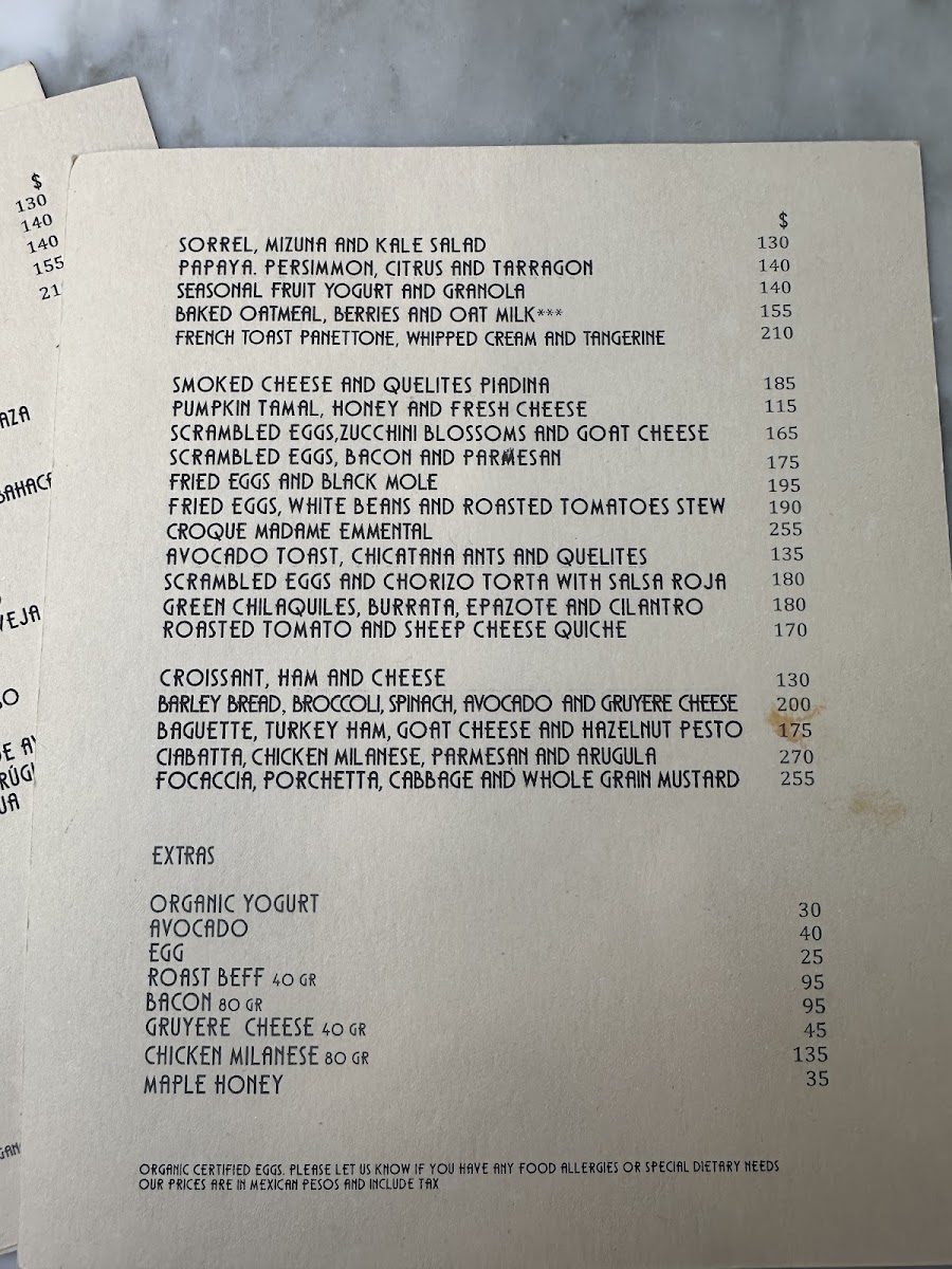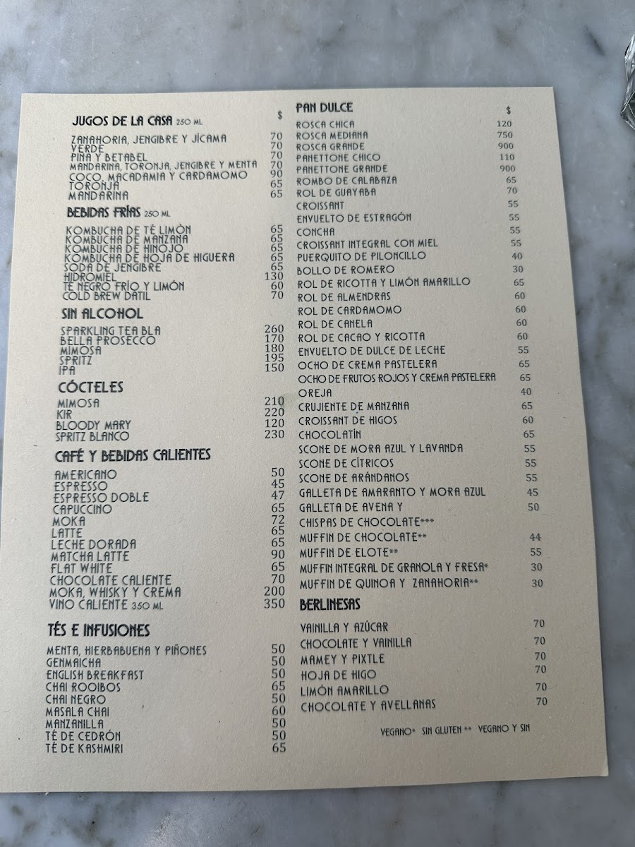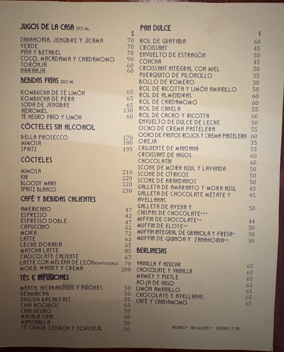 Start your day with hearty plates like chilaquiles verdes topped with creamy burrata, scrambled eggs with goat cheese and zucchini flowers, or a classic Croque Madame on sourdough. The bakery selections, including guava rolls, tarta de limón amarillo y frutos rojos, and a rotating variety of fresh bread, pair beautifully with expertly made hot beverages.